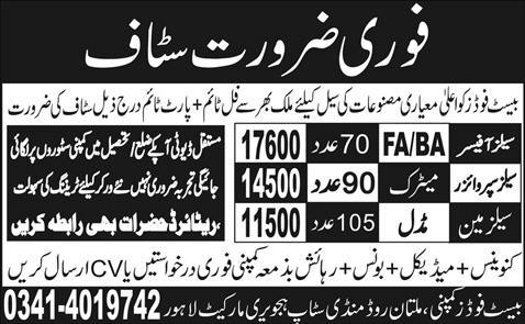 Best Foods Requires Sales Staff