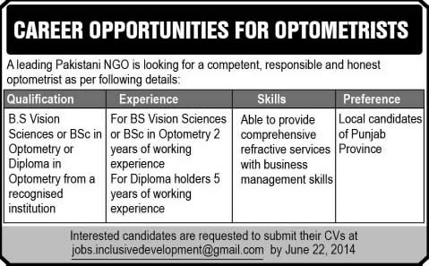 - Latest Optometrist Jobs in Pakistan 2014 June for NGO