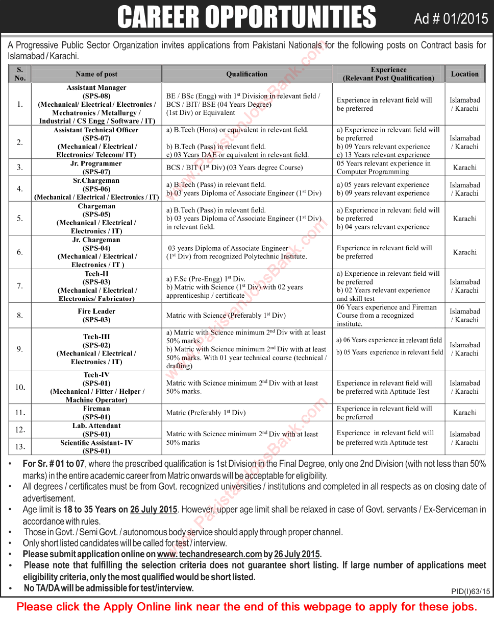 www.techandresearch.com Jobs 2015 July Online Apply NESCOM Latest Advertisement