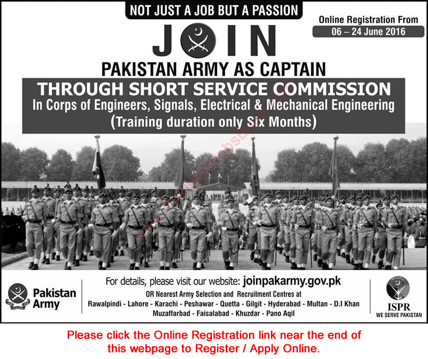- Join Pakistan Army as Captain June 2016 through Short Service Commission Online Registration