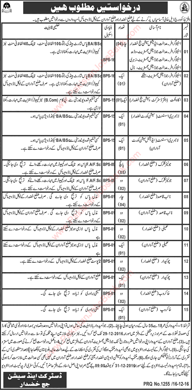 - Naib Qasid Jobs in District and Session Court Khuzdar December 2016 Pakistan Balochistan