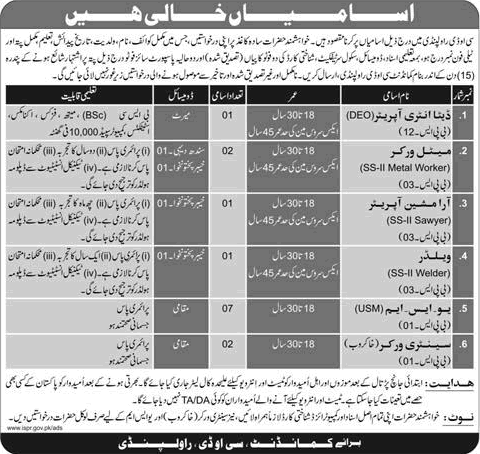 - Central Ordnance Depot Rawalpindi Jobs September 2017 Unskilled Manual, Sanitary Workers & Others