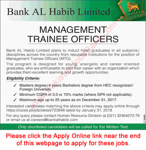 - Bank Al Habib Jobs 2018 Apply Online Management Trainee Officers MTO