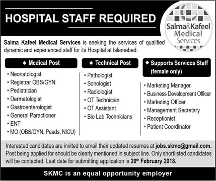 - Salma Kafeel Medical Services Islamabad Jobs 2018 February Pakistan