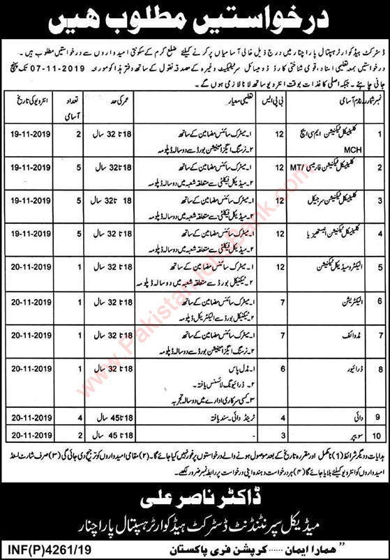 - DHQ Hospital Parachinar Jobs 2019 October Clinical Technicians & Others