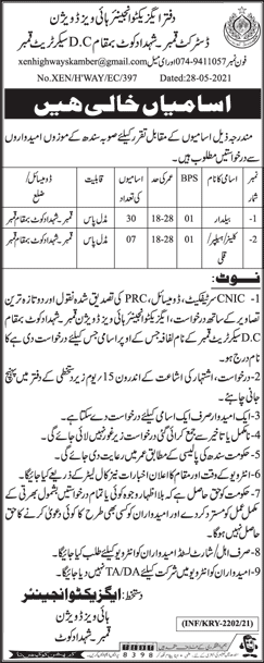 - Highway Division Kamber Shahdadkot Jobs 2021 June Baildar & Cleaners / Helpers